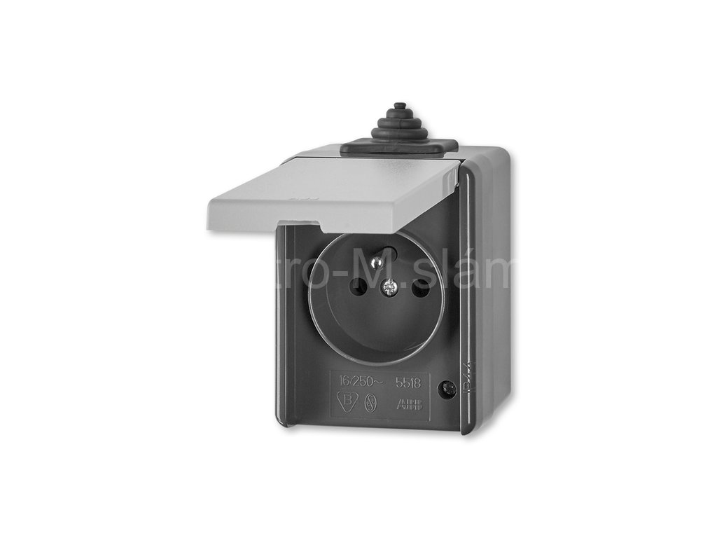 5518-2929 S Zásuvka jednonásobná s víčkem, IP 44, šedá, ABB Praktik