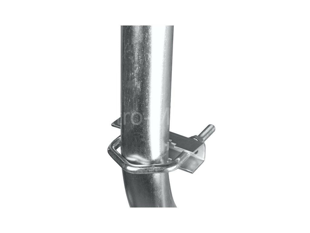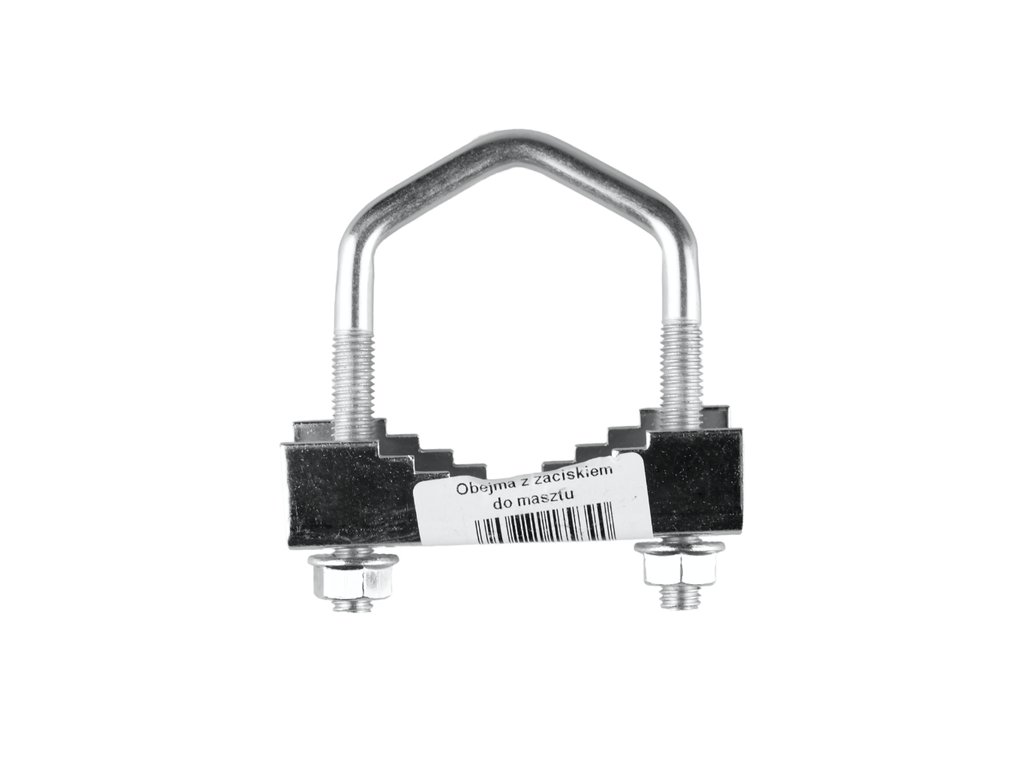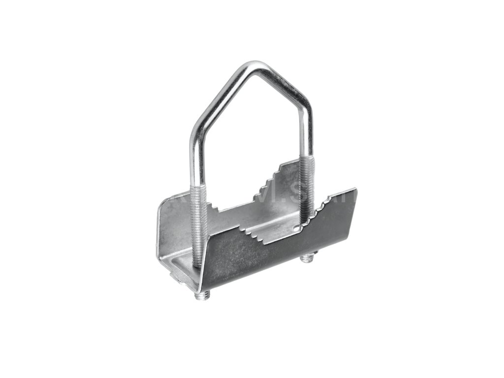 Anténní svorka pro montáž antén na držák, stožár nebo balkónové zábradlí. Nastavení svorek umožňuje montáž antény na trubky o průměru 25-50 mm . Upevňovací deska se zuby chrání anténu před změnou její polohy na potrubí. Závitová tyč M6 . Rozměry: 80 x 80 x 21 mm. Materiál: pozinkovaná ocel . Polský výrobek.