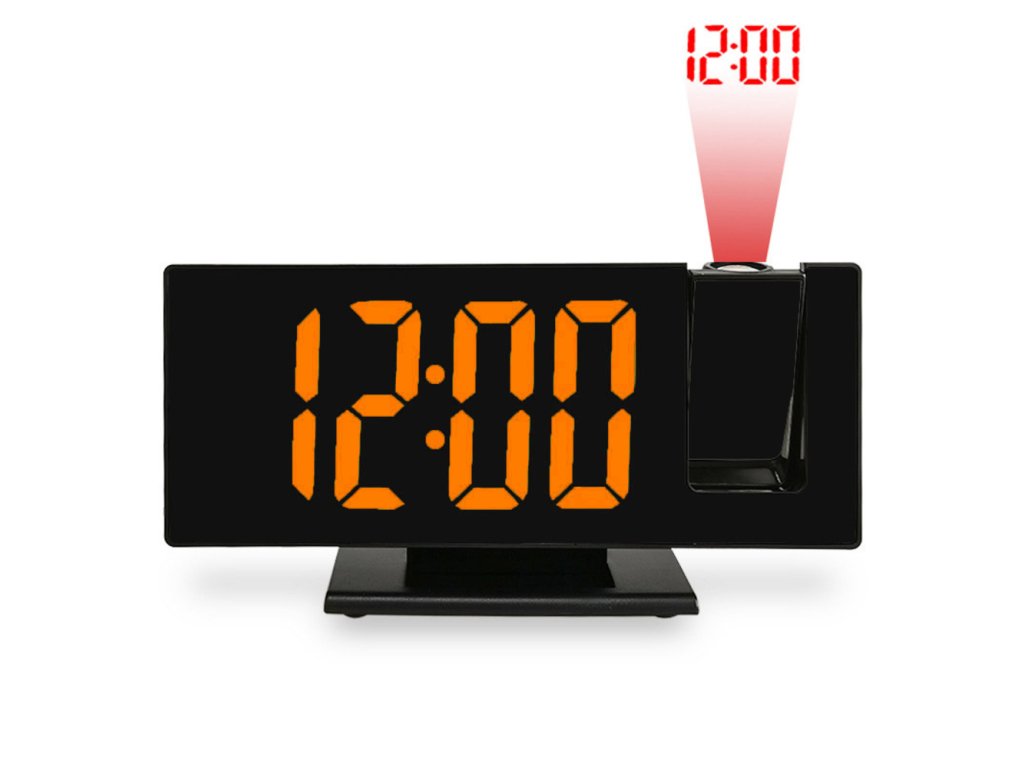 12-ti nebo 24-hodinový denní režim Elektrický adaptér do sítě Senzor stmívání (rozsvítí se displej) Budík Projektor času (teploty) na stěnu nebo strop Teplota (Celsius nebo Fahrenheit) Datum (kalendář) Celoplošné podsvícení |