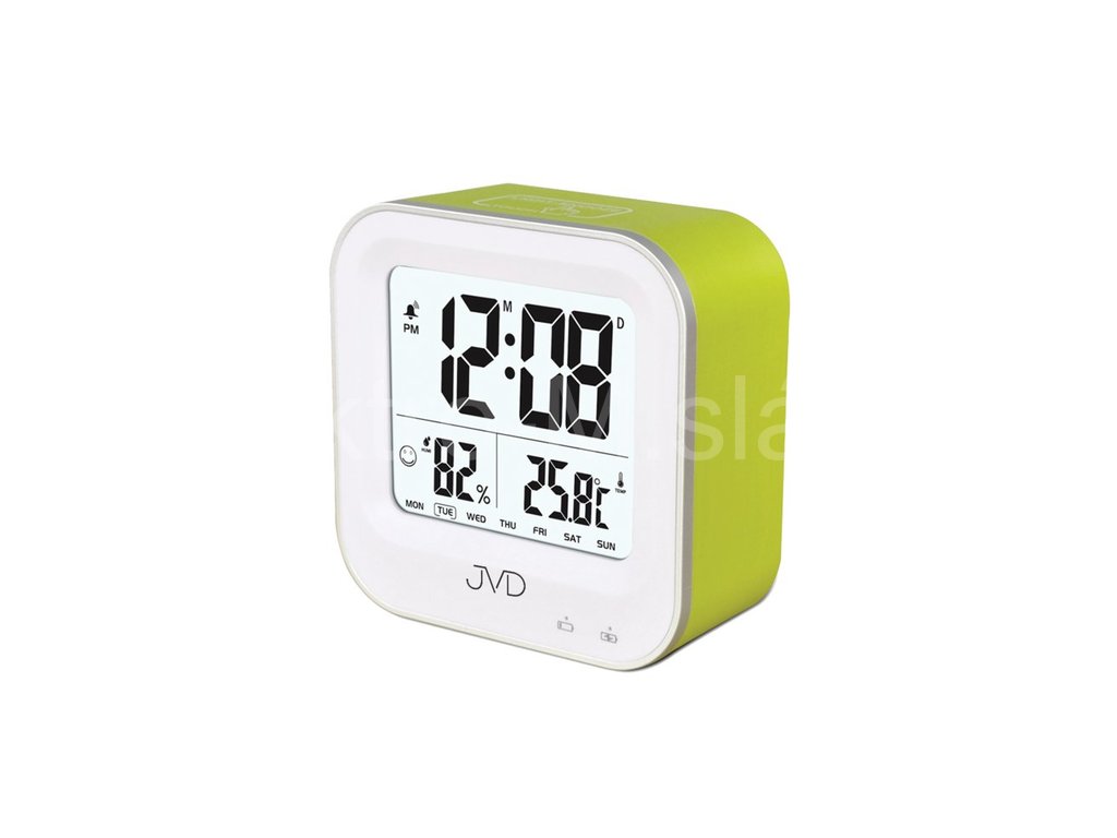 Trendový moderní budík JVD vás upoutá svým mladistvým designem, který se skvěle hodí do dětských pokojů, ale také do moderních kanceláří. Na přehledném displeji najdeme čas, vnitřní teplotu a dokonce vlhkost vzduchu.