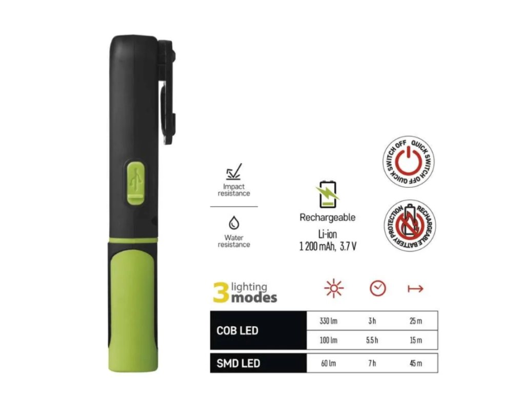 COB LED + SMD LED nabíjecí svítilna P4537, 330 lm, 1200 mAh