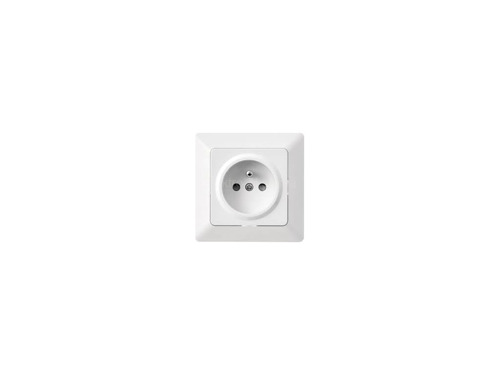 Kvalitní jednonásobná FRENCH zásuvka s integrovanou dětskou clonkou. Montáž do krabice. IP20. Šroubové svorky.