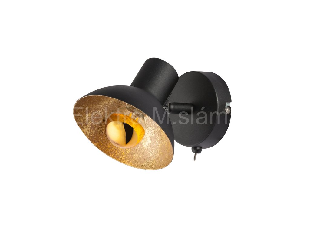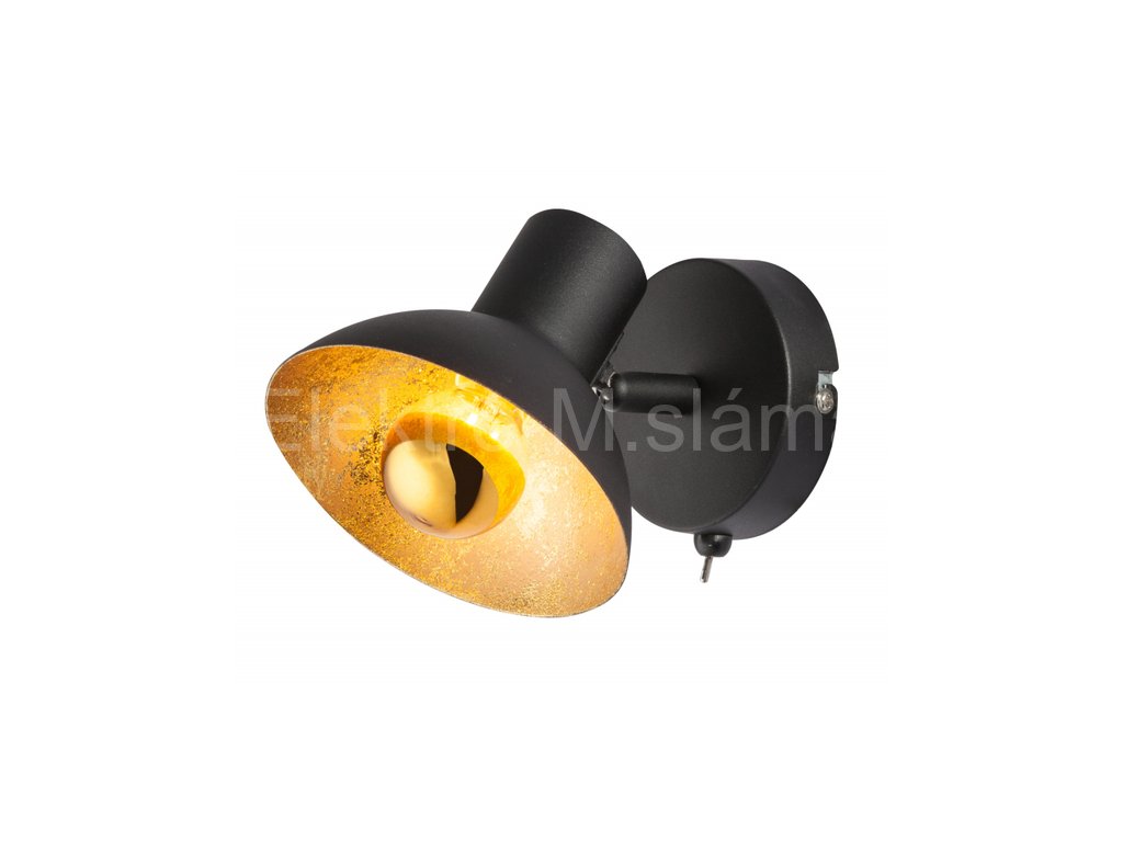 Boční svítidlo, kov černý, kov černý a zlatý, včetně LED LM 10505, s mosaznou krytkou, vypínač, ŠxV:120x121, H:152, včetně žárovky 1xE14 LED 4W 230V, 380lm, 2700K.