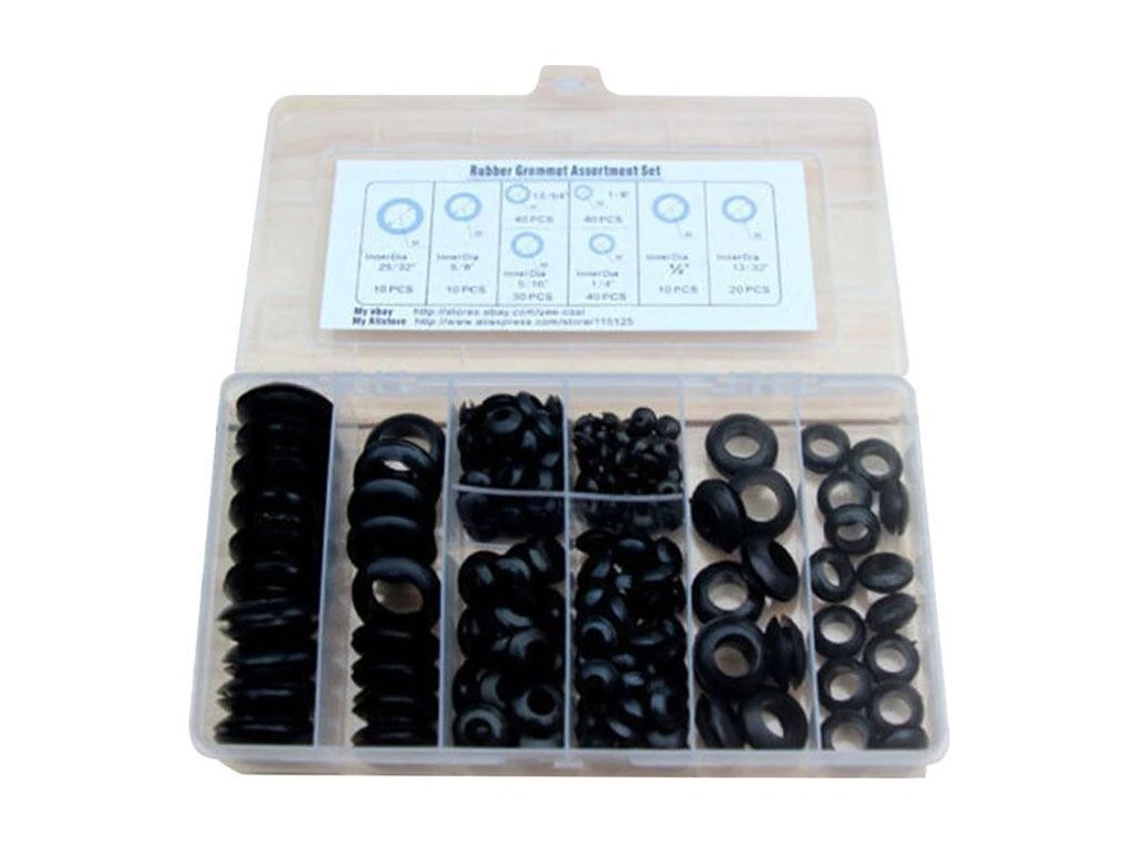 Sada gumových průchodek pro všestranné použití v praktické krabičce s 8-mi sekcemi. Průchodky je možno instalovat do stěny o tloušťce 1,5–4mm