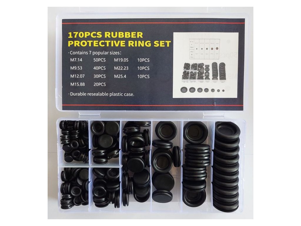 Sada gumových záslepek pro všestranné použití v praktické krabičce s 7-mi sekcemi. Záslepky je možno instalovat do stěny o tloušťce 1,5–4mm
