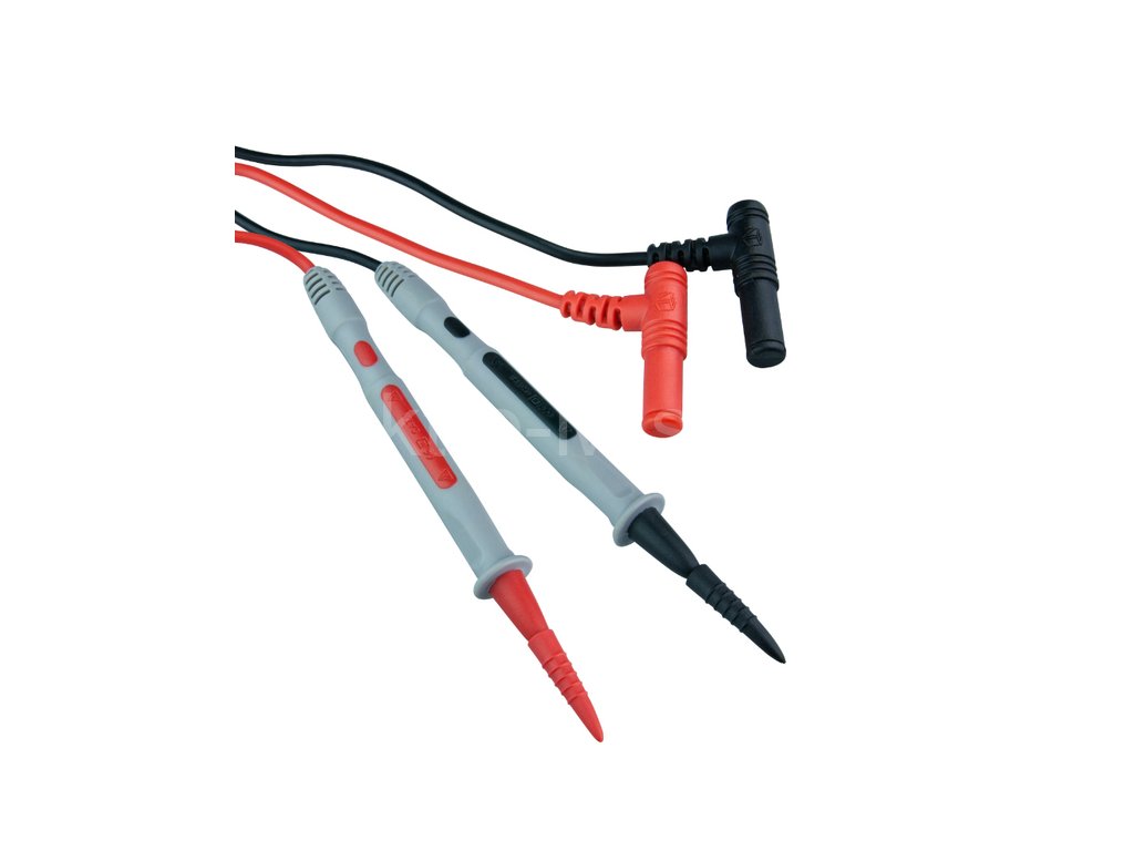 Sada izolovaných přívodů pro elektroměry. Kategorie měření: kat. II. max. proud: 20 A. Max. napětí: 1000 V. Úhlový banánkový konektor. Rovná jehlová měřicí sonda. Kryty konektorů. Délka kabelu: 93 cm. Balení: sáček