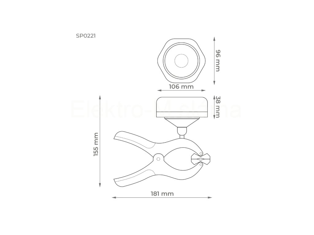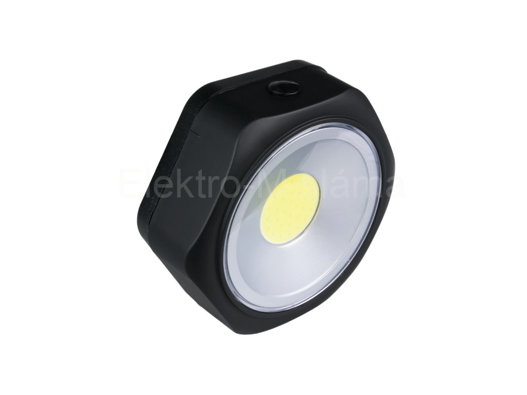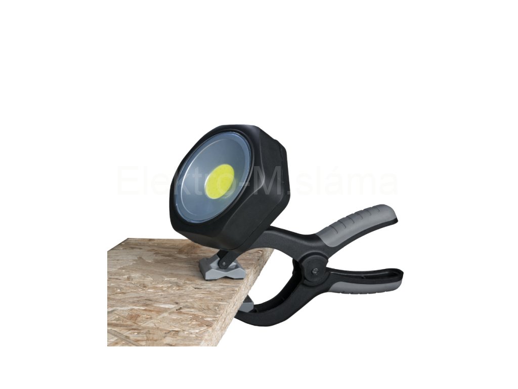COB pracovní lampa. Světelný tok: 220 lm. Napájení: 3 x AA (nejsou součástí balení). Upínací rukojeť - nastavení svahu a natočení lampy. Různé svítidlo má magnetický pohon. Baleni: puchýř.
