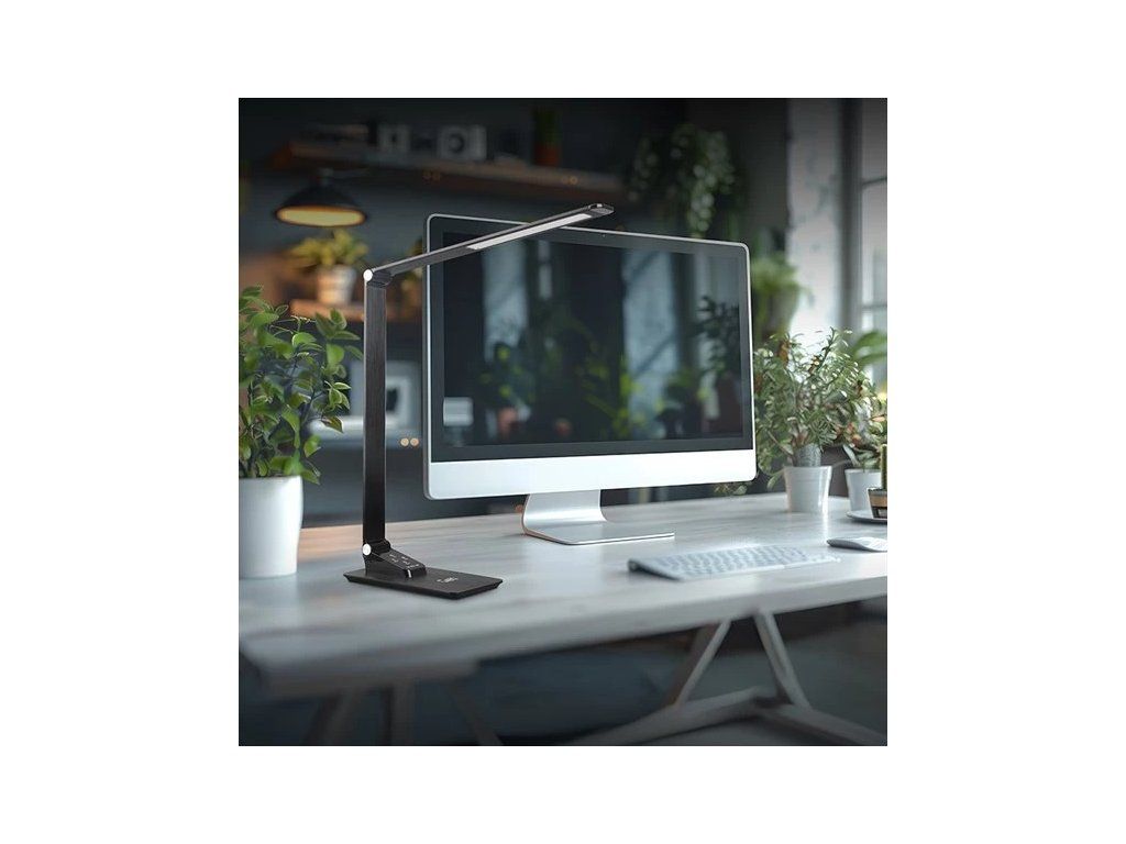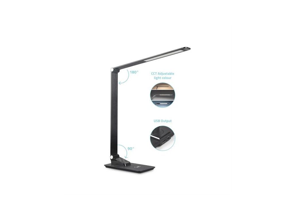 LED stmívatelná lampa GETI105B je moderní a energeticky úsporné osvětlení, které umožňuje regulaci intenzity a volbu barvy světla podle vašich potřeb. Díky pokročilé LED technologii poskytuje jasné a stabilní světlo s dlouhou životností. Je ideálním osvětlením do vašich kanceláří, pracoven, dětských pokoju a všude tam, kde je potřeba spolehlivé a efektivní osvětlení pracovního prostoru. USB A port umožňuje nabíjení telefonů nebo jiných zařízení.