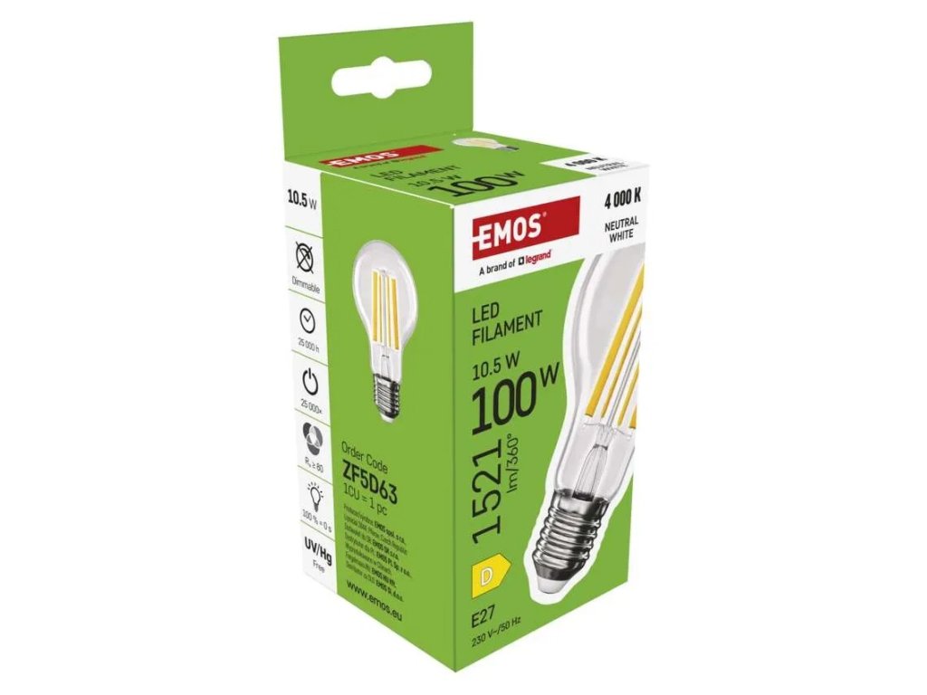 LED žárovka Filament E27 10,5W NW A60 1521lm ZF5D63
