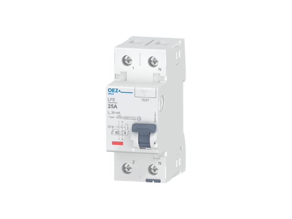 LFE-25-2-030A TYP: A Proudový chránič 25A, AC 230V, 30mA, 2pól, 6kA, typ A OEZ:46395