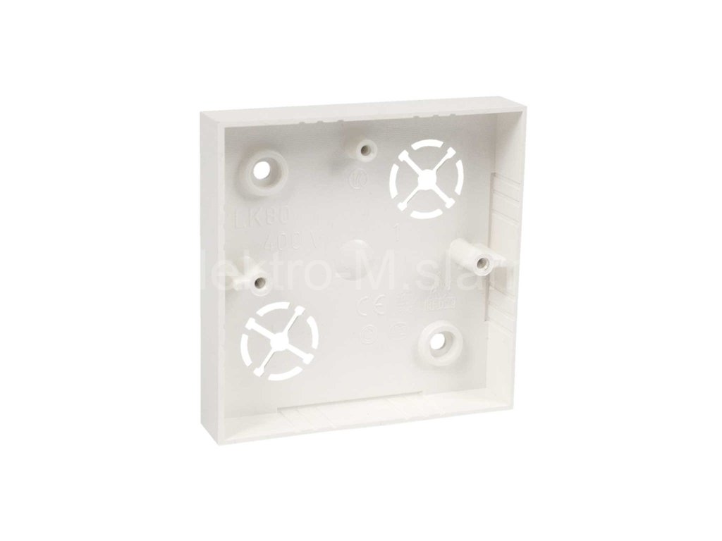 LK 80/1 - KRABICE LIŠTOVÁ, konfigurace HB, barva SUPERBÍLÁ/RAL9003, balení - 10/160 ks - pro opravy starších instalací. Pro instalaci na materiály třídy reakce na oheň E nebo F použijte izolační podložku.