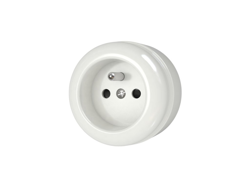 Zásuvka na omítku s kolíkem v retro vintage stylu, bílý matný plast