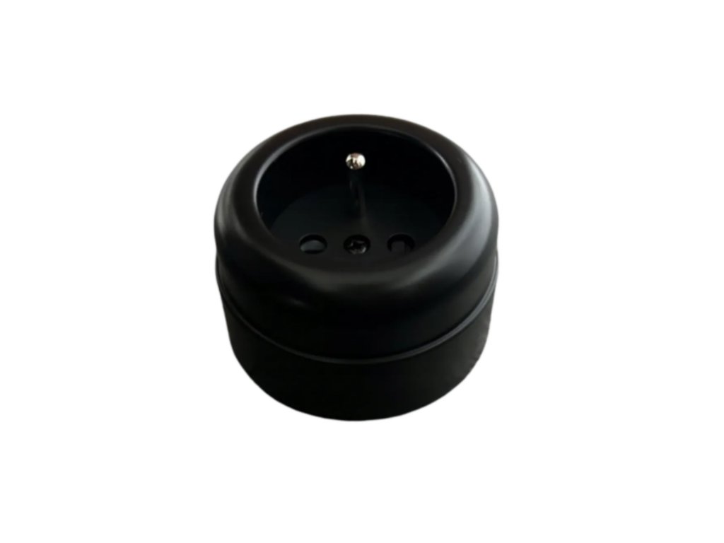 Zásuvka na omítku s kolíkem v retro vintage stylu, černý matný plast