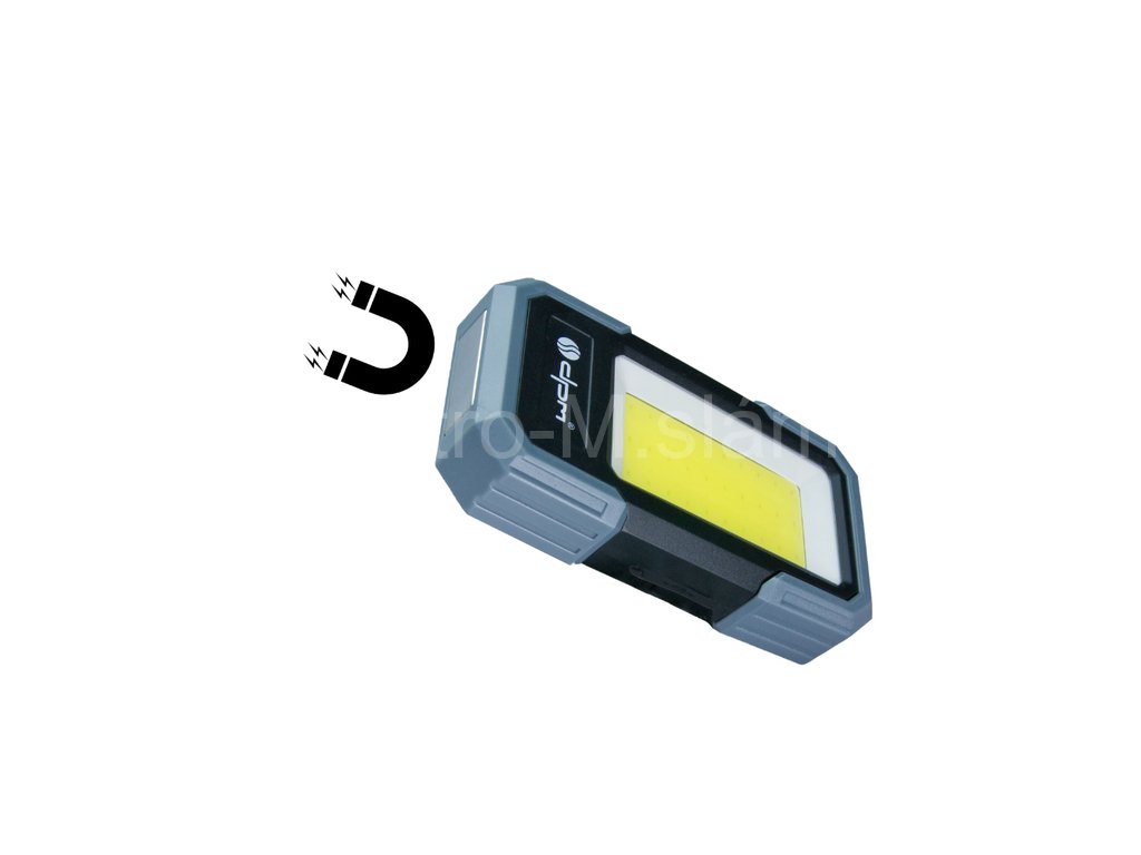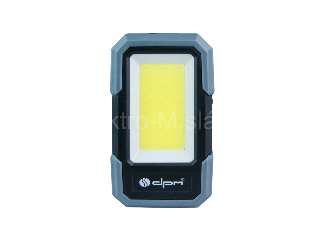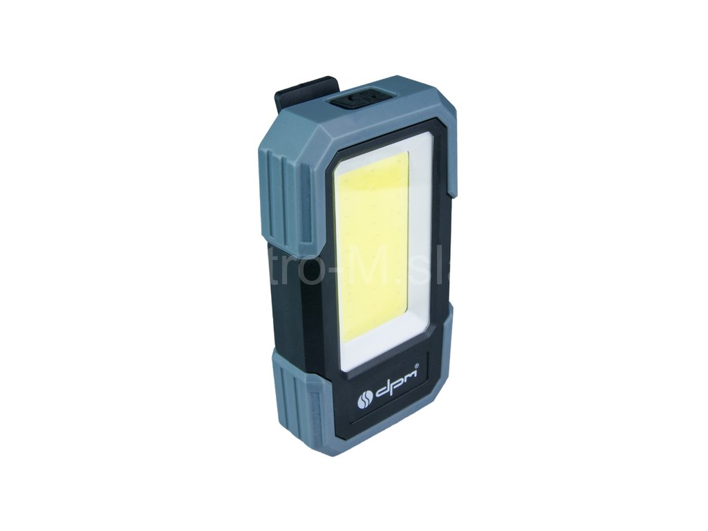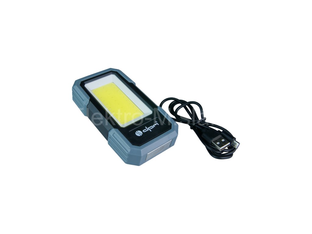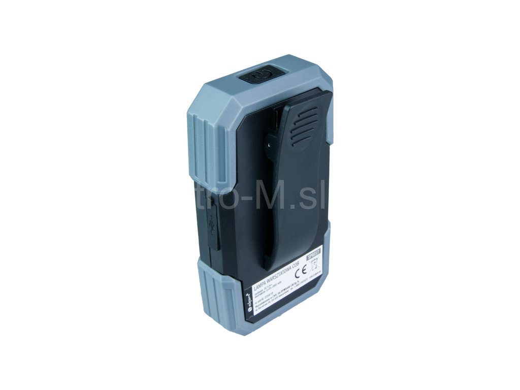 Dobíjecí pracovní lampa. Světelný zdroj: COB. Světelný tok: 350lm. Napájení: DC 5V=. Vestavěná Li-Po baterie (1000 mAh). pracovní doba: max. 3,5 hod. Doba nabíjení: max. 2 h. 3 režimy svícení. MicroUSB kabel součástí balení. Magnet + háček na zavěšení EN Nabíjecí pracovní lampa. Světelný zdroj: COB. Světelný tok: 350lm. Napájení: DC 5V.Vestavěná Li-Po baterie (1000mAh). provozní doba: max. 3,5 hod. Doba nabíjení: max. 2 hodiny 3 světelné režimy. microUSB kabel součástí balení. Magnet + háček na zavěšení