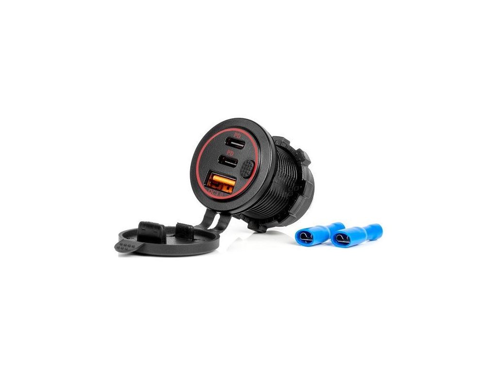 Popis | Napájecí zdířka voděodolná s vypínačem USB + 2x USB-C QC3.0 12V 24V |
