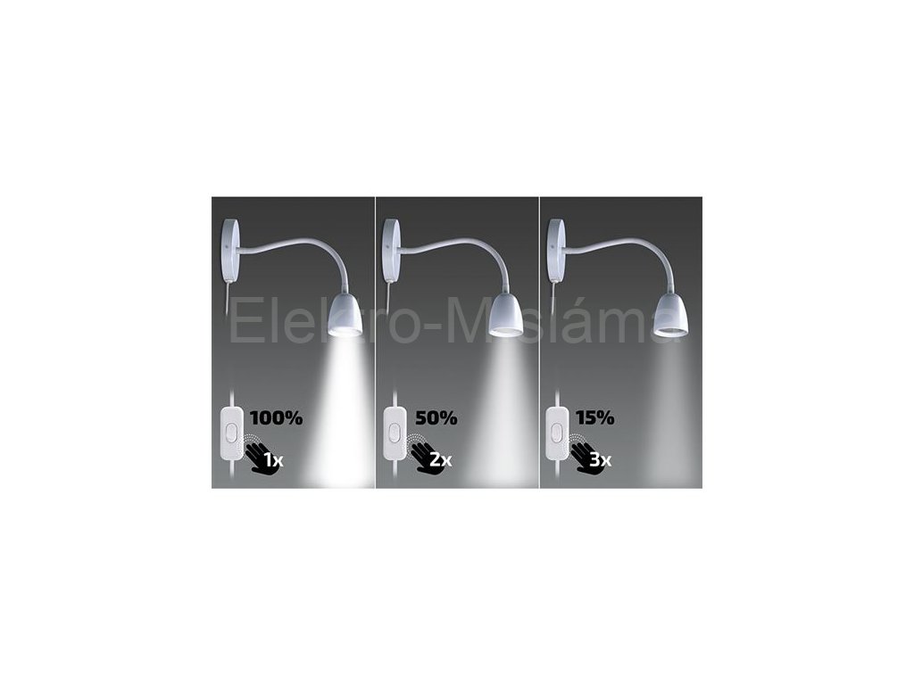 - D lampička disponuje zabudovanou elektronikou umožňující stmívání obyčejným vypínačem umístěným na přívodní šňůře.