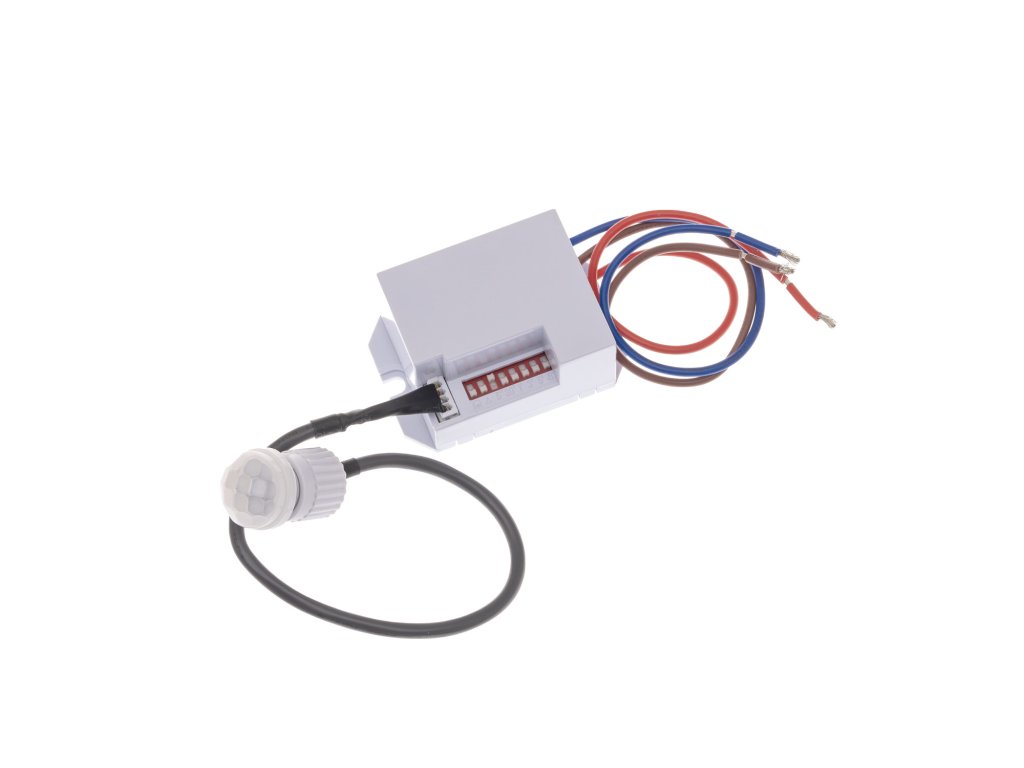 PIR pohybové čidl, které snímá pohyb na základě tepelného záření, jenž vyzařuje tělo v infračervené části spektra. Snímané pole čidla je kruhové, 360°, maximální vertikální úhel dosahu čidla pohybu je 120°