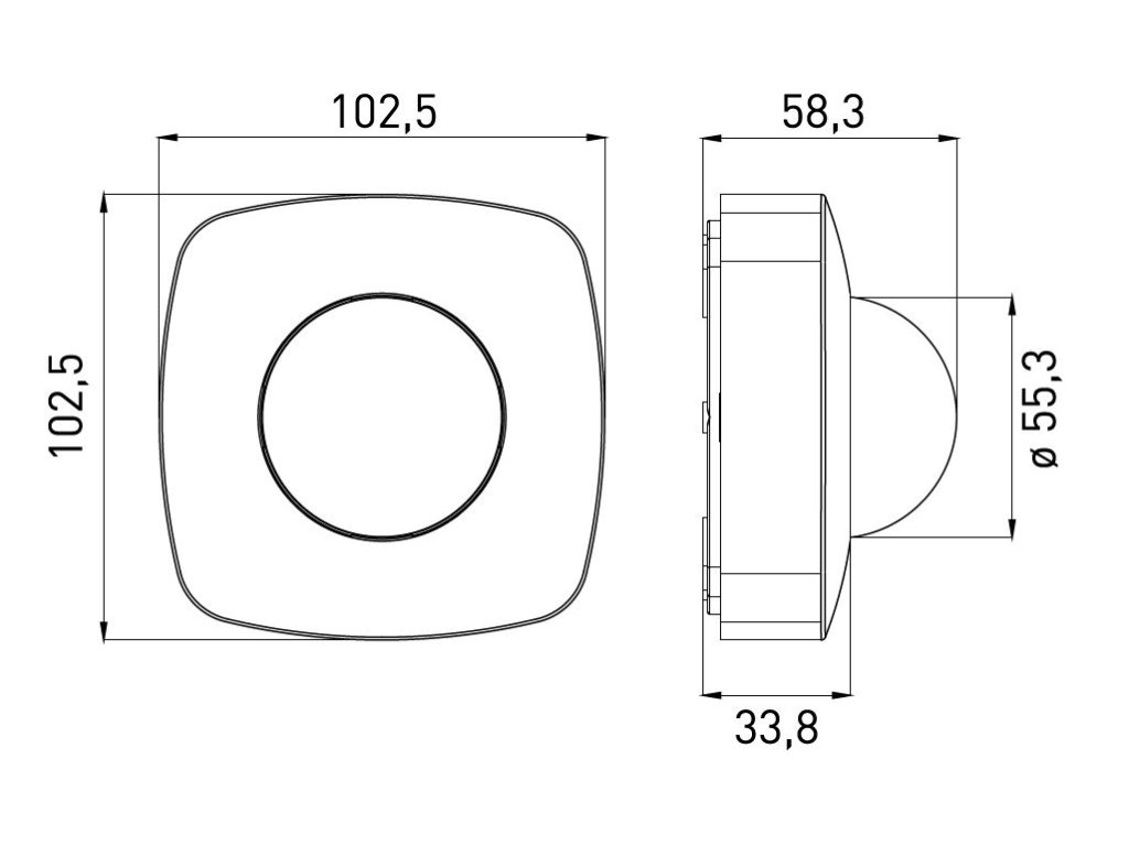 Infračervené přítomnostní pohybové čidlo určené do interiéru.