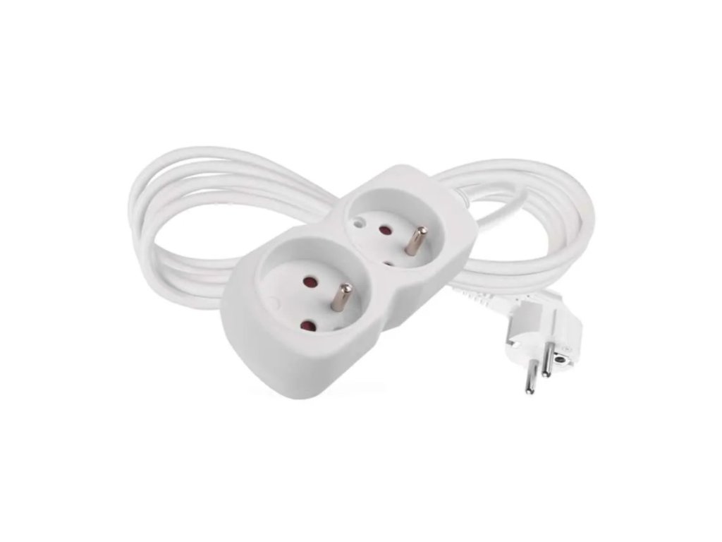 Bílý prodlužovací přívod, 2 zásuvky s dětskými clonkami a délkou 3 m. Průřezem vodiče 1 mm2. Vhodný pro maximální zátěž 10 A max.