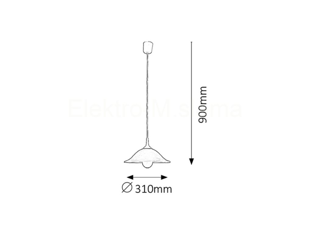 Závěsné svítidlo ve vždy módním stylu s 1 zásuvkou. Bílé plastové svítidlo s 90 cm dlouhým závěsem a bílým alabastrovým skleněným stínidlem o průměru 31 cm. Svítidlo lze použít i s úsporným světelným zdrojem do 60W, s paticí E27.