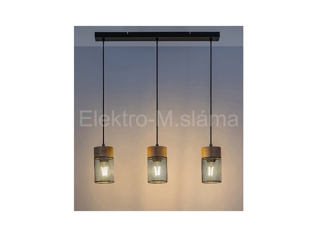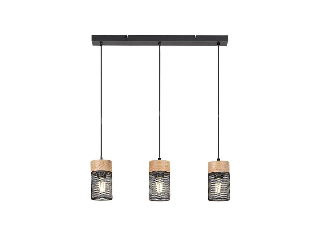 Přívěsek Callum se 3 žárovkami v industriálním stylu bude jedinečným doplňkem vybavení vašeho moderního obývacího pokoje. Lampa v barvě buku, která je vyrobena z kovu a dřeva, je doplněna dlouhou podlouhlou ozdobnou základnou a válcovitými černými tyčovými stínidly, která jsou ve spodní části otevřená a jemně filtrují světlo proudící z hlav lampy. Tři hlavy lamp visí vedle sebe v řadě ve stejné výšce. Dřevěné části Callum vytvářejí přirozený efekt a tvoří vzrušující kombinaci s průmyslovými stínidly. Tuto lampu lze použít se třemi žárovkami, každá o výkonu až 25 W. Typ patice je E27. V závislosti na vašich preferencích si můžete vybrat světelné zdroje vyzařující teplé nebo přirozené bílé světlo. Pokud zvolíte první z nich, můžete s touto lampou v obývacím pokoji umocnit útulnou, intimní atmosféru. Závěs Callum se 3 žárovkami má tyto rozměry: šířka 600 mm, výška 170 mm, průměr každého stínidla 95 mm, vzdálenost od stropu 1 200 mm. Tento model je dodáván bez světelných zdrojů.