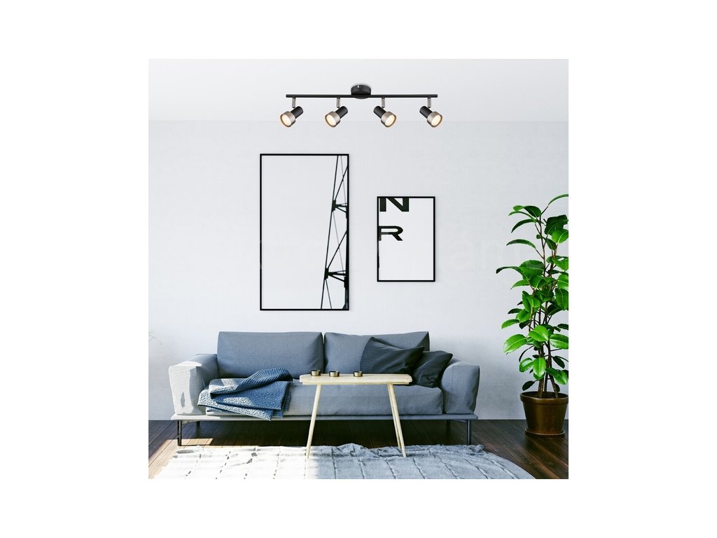 Stropní bodové svítidlo Konrad se 4 žárovkami v průmyslovém stylu se doporučuje především do obývacího pokoje nebo ložnice. Matně černý model, který je celý vyroben z kovu, je doplněn stínidly ve stříbrné barvě a lampu lze upevnit ke stropu pomocí malé kulaté ozdobné základny. Světlo lampy lze nasměrovat libovolně díky ohebným hlavám lamp, které jsou umístěny vedle sebe v řadě na dlouhé nosné tyči připevněné k ozdobné základně. Konrad lze použít se čtyřmi žárovkami, každá o výkonu až 50 W. Typ patice je GU10. Pokud byste chtěli použít toto stropní svítidlo v ložnici, doporučujeme jej provozovat s žárovkami vyzařujícími teplé bílé světlo, které vám pomůže vytvořit útulnou, intimní atmosféru. 4žárovkový reflektor Konrad má tyto rozměry: šířka 600 mm, výška 120 mm, průměr stínidel 55 mm, vzdálenost svítidla od stropu 125 mm, montážní průměr 80 mm. Tento model je dodáván bez světelných zdrojů.