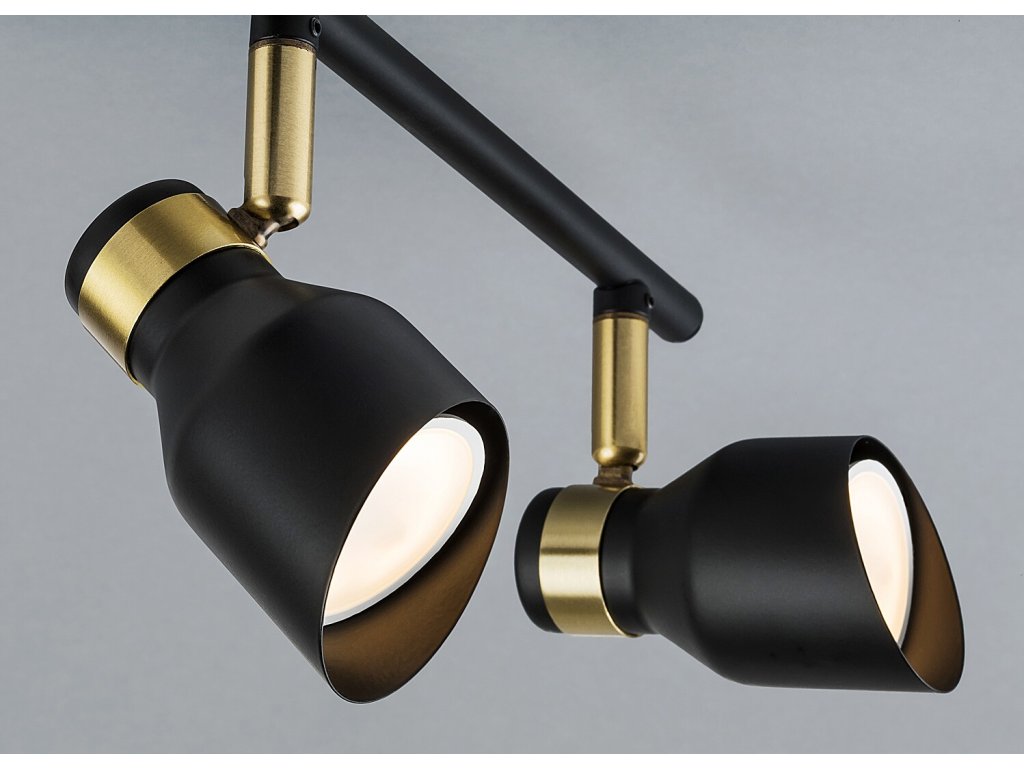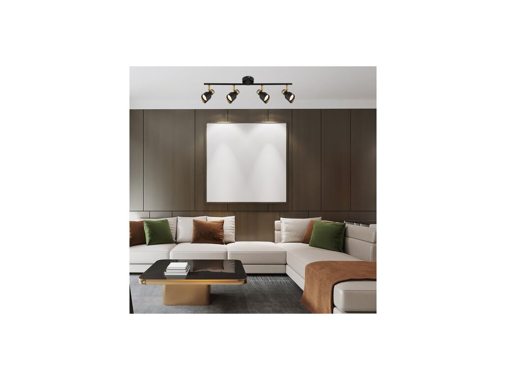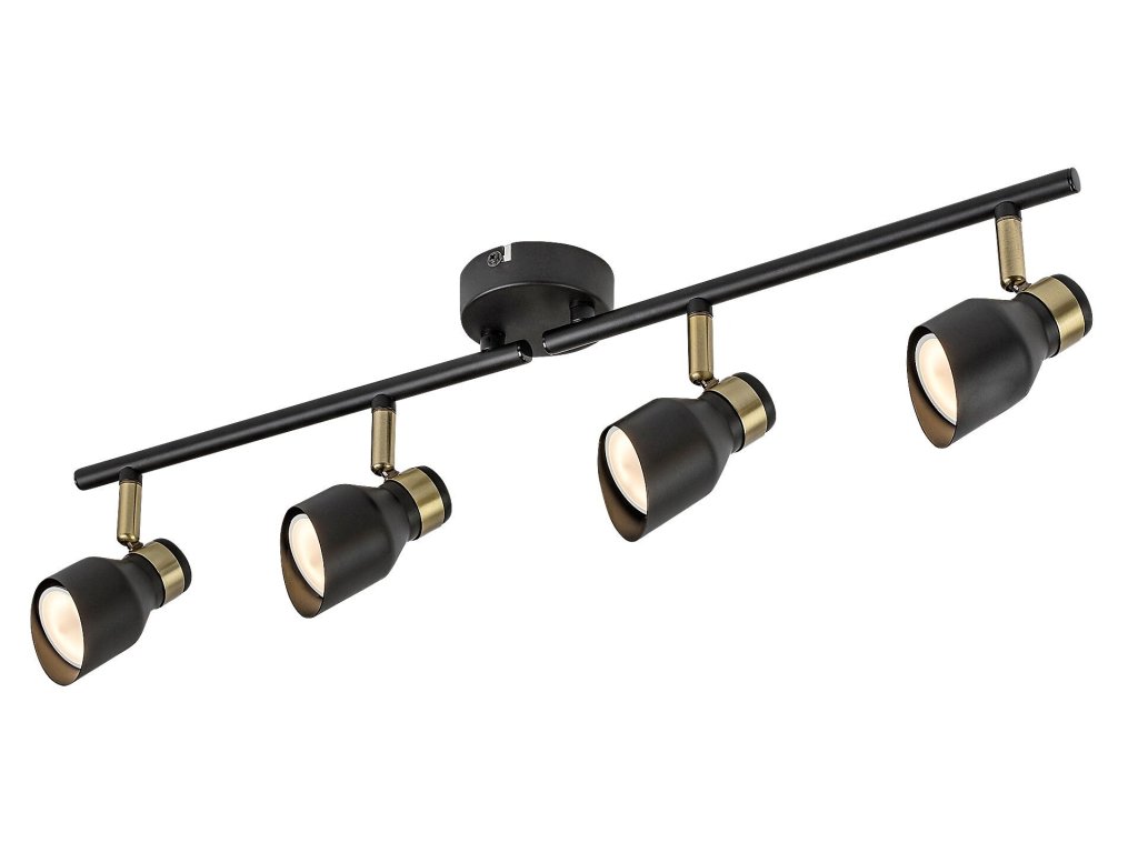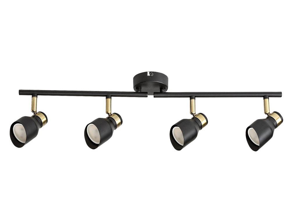 Čtyřité stropní svítidlo Lilou v moderním stylu je vhodnou volbou do obývacího pokoje, ložnice nebo pracovny. Matný černý model vyrobený výlučně z kovu je doplněn prvky ve zlaté barvě, které dodávají lampě elegantní vzhled. Lilou lze připevnit na strop pomocí malé okrouhlé základny, přičemž hlavy svítidel jsou umístěny vedle sebe na vodorovné tyči připevněné k základně. Hlavy svítidel, které jsou ve spodní části otevřeny a vybaveny válcovými stínítky seříznutými pod úhlem, lze posouvat tak, aby se jejich světlo dalo nasměrovat podle potřeby. Lampu Lilou lze provozovat se čtyřmi světelnými zdroji každý s maximálním příkonem do 25 W, typ patice GU10. V závislosti na našem vkusu a místě instalace si pro lampu můžeme vybrat teplé nebo zdroje přirozeného bílého světla. Rozměry čtyřitého stropního svítidla Lilou jsou tyto: šířka 700 mm, průměr každého stínítka 55 mm, vzdálenost lampy od stropu 180 mm, instalační průměr 80 mm. Tento model se dodává bez světelných zdrojů.