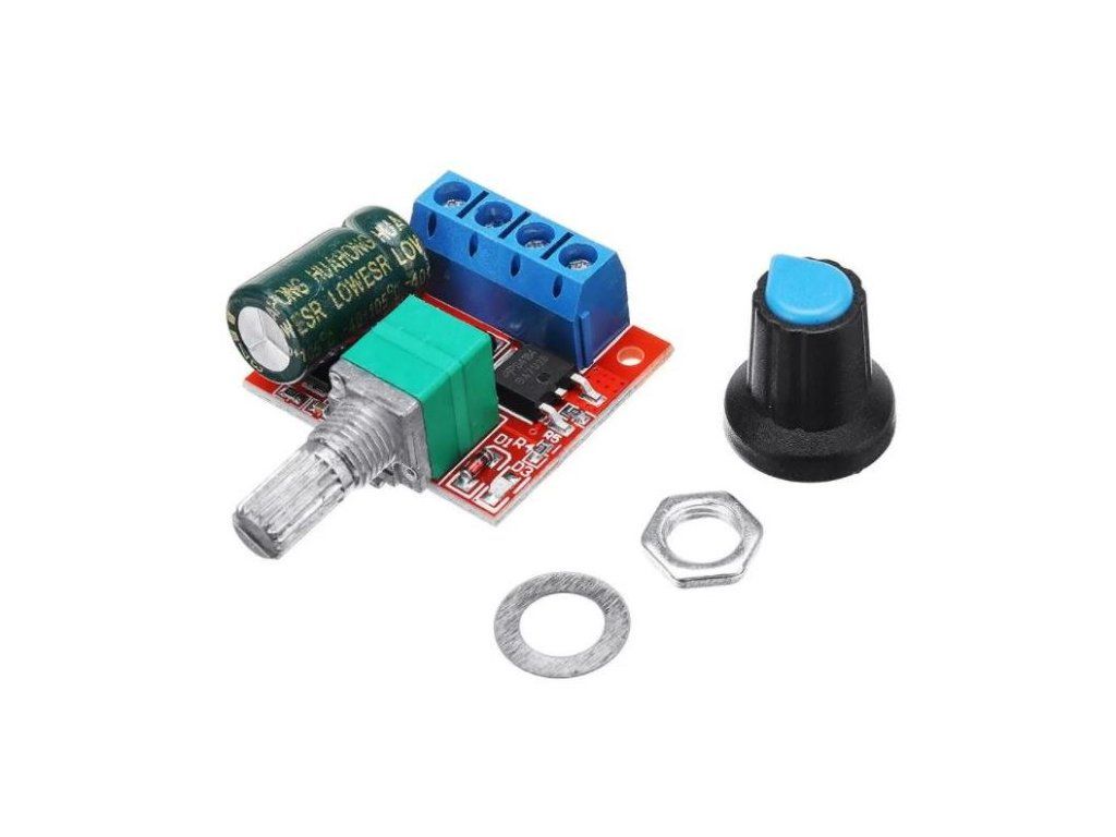 Impulsní PWM regulátor pro DC motory nebo LED světla a pásky. Bez zpětné vazby pro kontrolu nastavených otáček. |