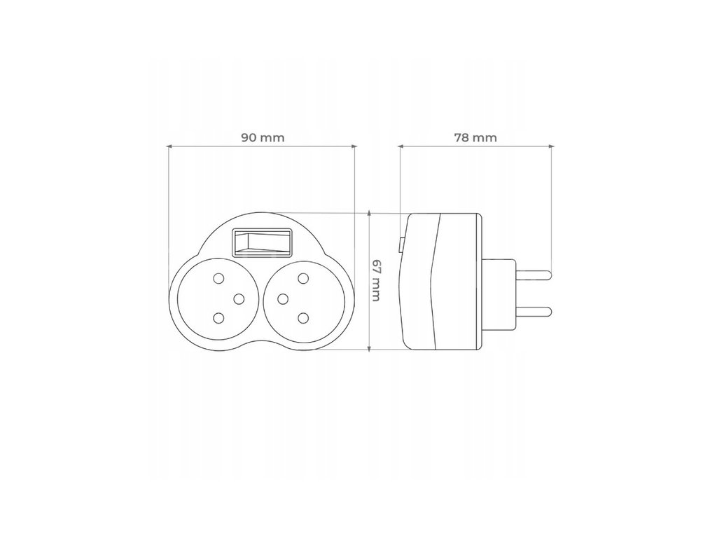 Elektrický rozbočovač P904B má 2 uzemněné zásuvky . Můžete k němu připojit 2 zařízení vybavená zástrčkou s ochranným kolíkem. Celkový proudový odběr připojených zařízení by neměl překročit 16 A ( 3500 W ). Rozvaděč je vybaven otevíracími kryty, které snižují riziko úrazu elektrickým proudem.