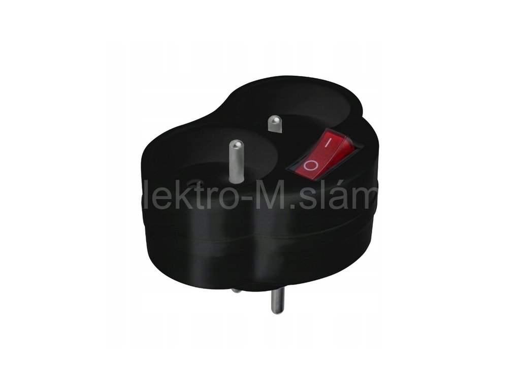 Elektrická rozdvojka s vypínačem, 2 černé uzemněné zásuvky