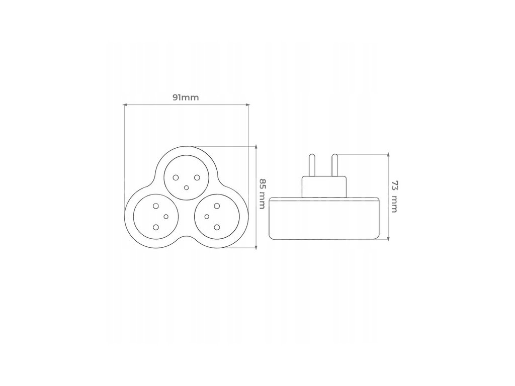 Elektrický rozbočovač P903B má 3 uzemněné zásuvky . Můžete k němu připojit 3 zařízení vybavená zástrčkou s ochranným kolíkem. Celkový proudový odběr připojených zařízení by neměl překročit 16 A ( 3500 W ). Rozvaděč je vybaven otevíracími kryty, které snižují riziko úrazu elektrickým proudem.