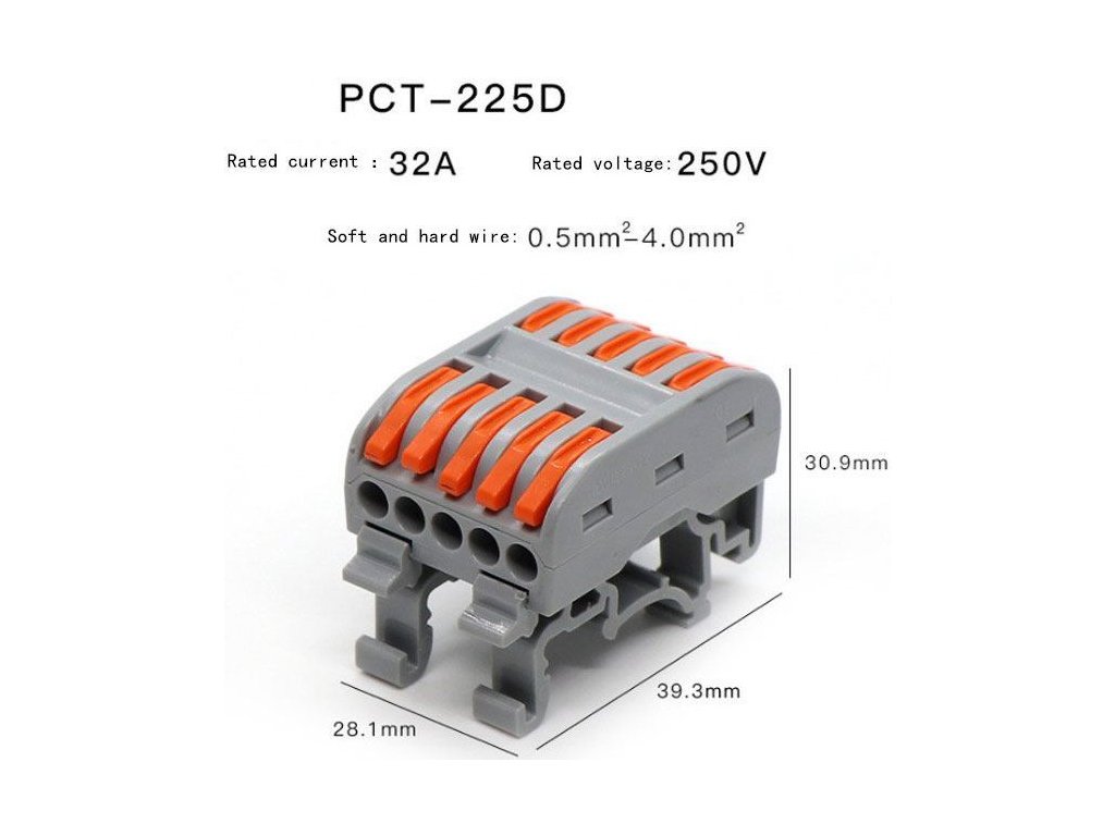 Rychlospojka bezšroubová PCT-225D pro kabely 0,5-4mm2 na DIN lištu