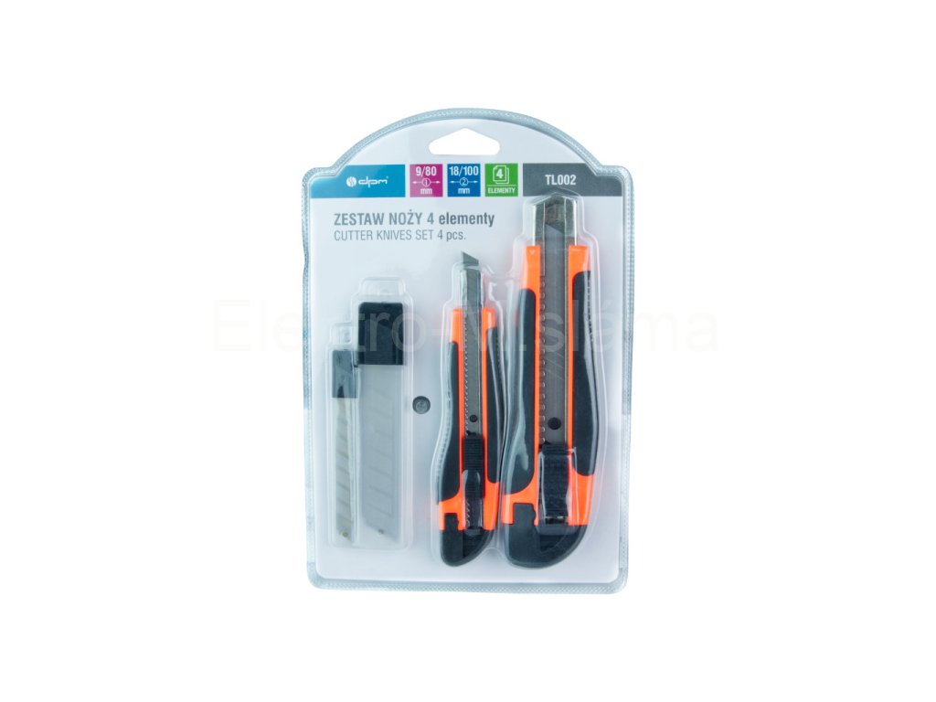 Sada segmentových tapetovacích nožů. 2x nůž 9/18 mm. 2x sada čepelí. Baleni: puchýř.