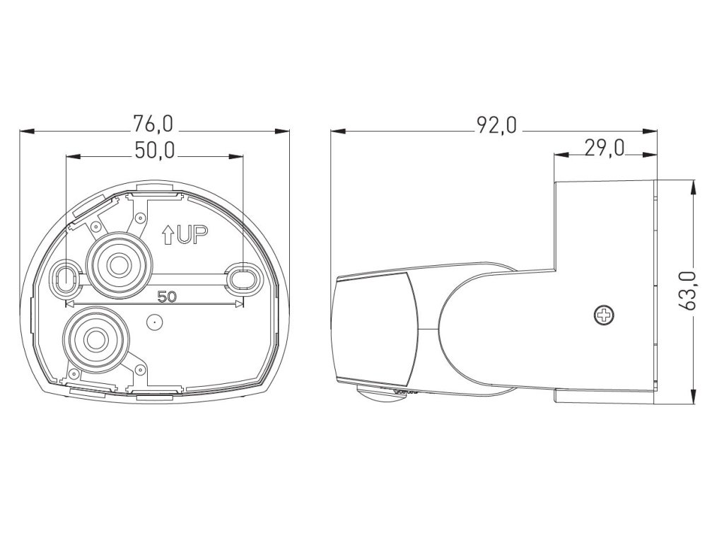 Instalace přisazením ke zdi/stropu.