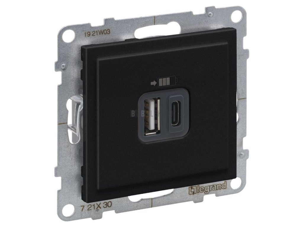 SUNO 721430 USB NABÍJEČKA DVOJITÁ TYP A+C černá LEGRAND