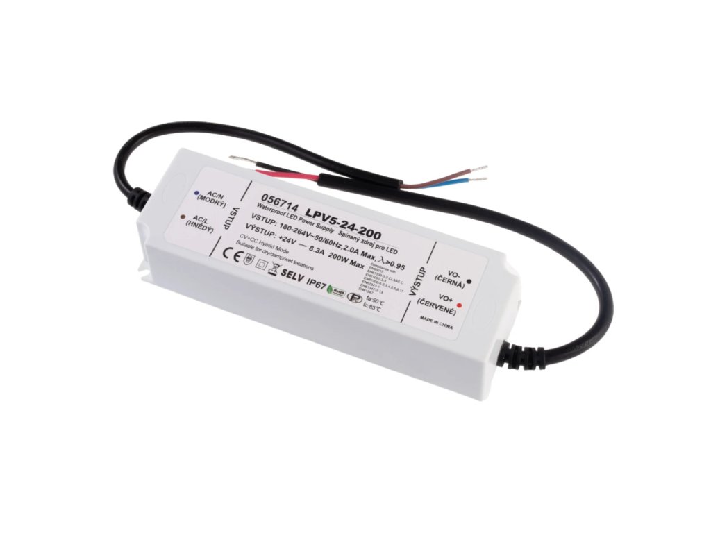 Kvalitní voděodolný LED zdroj pro LED pásky a další 24V LED osvětlení nabízíme v krytí IP67 a s prodlouženou 5letou zárukou. Jedná se o tzv. hybrid CV+CC (constant voltage + constant current) zdroj, což jsou napájecí zdroje s konstantním napětím a možností fungovat jako zdroj konstantního proudu. Jejich primární funkcí je dodávat konstatní napětí, avšak v případě přetížení zdroje nebo připojení LED zátěže s napětím nižším než je nominální výstupní napětí zdroje, dochází k přechodu zdroje do režimu s konstantním výstupním proudem. Toto omezení výstupního proudu je v tomto případě považováno za normální provozní stav, nikoli za poruchu, což je odlišné od čistě CC (konstantní proudových) zdrojů.