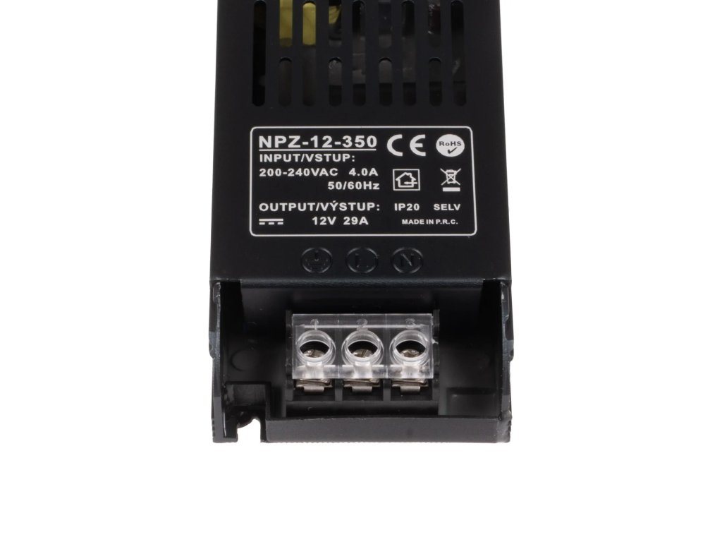 LED elektronický spínaný zdroj (trafo) 12V 350W v krytí IP20 je určený pro vnitřní použití. Vhodné pro nízkonapěťové LED produkty jako jsou například LED pásky, LED žárovky a další LED osvětlení.