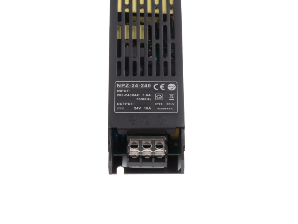 LED elektronický spínaný zdroj (trafo) 24V 240W v krytí IP20 je určený pro vnitřní použití. Vhodné pro nízkonapěťové LED produkty jako jsou například LED pásky, LED žárovky a další LED osvětlení.