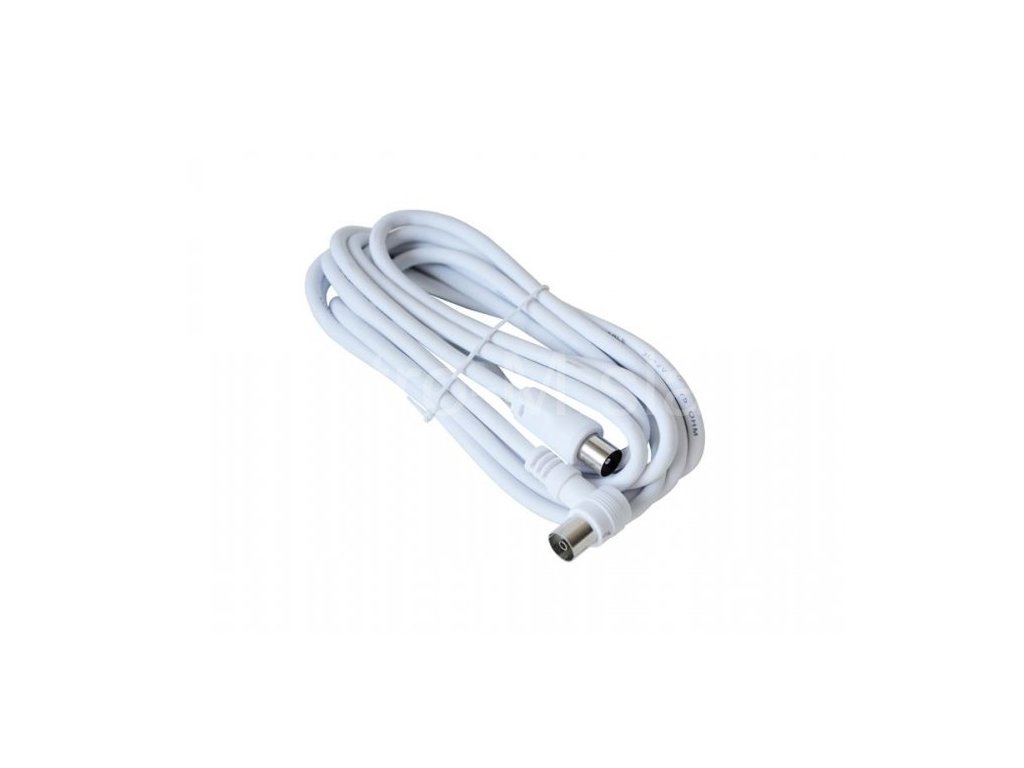 Anténní koaxiální kabel s vidlicí a zásuvkou IEC. Kabel má úhlový konektor (90°). Kabel má dvojité stínění pro redukci elektromagnetického rušení. Délka kabelu je 2,5 m. Koaxiální kabel je vhodný pro SAT, DVB-T, ANT, DECODER, FLAT TV a TV.