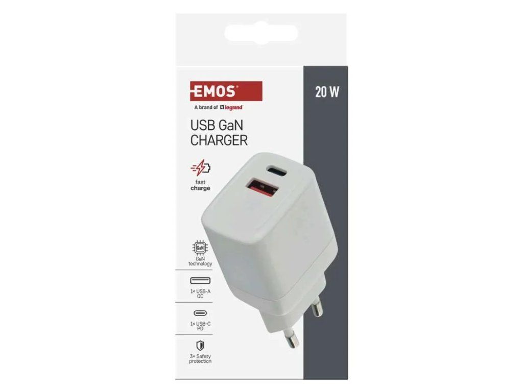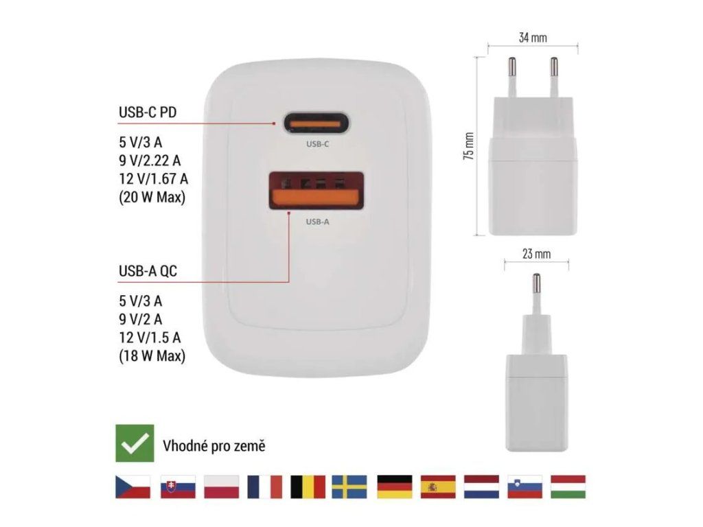 Univerzální USB C+A adaptér GaN do sítě PD 20 W max. V02G20