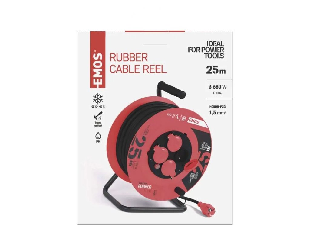 Prodlužovací kabel na bubnu EMOS, o průřezu vodiče 1,5 mm2 a délce 25 m, je celý vyroben z kvalitních materiálů a obstojí i při práci ve venkovním prostředí. Díky otáčejícímu bubnu se práce s ním stává pohodlná, rychlá a jednoduchá.