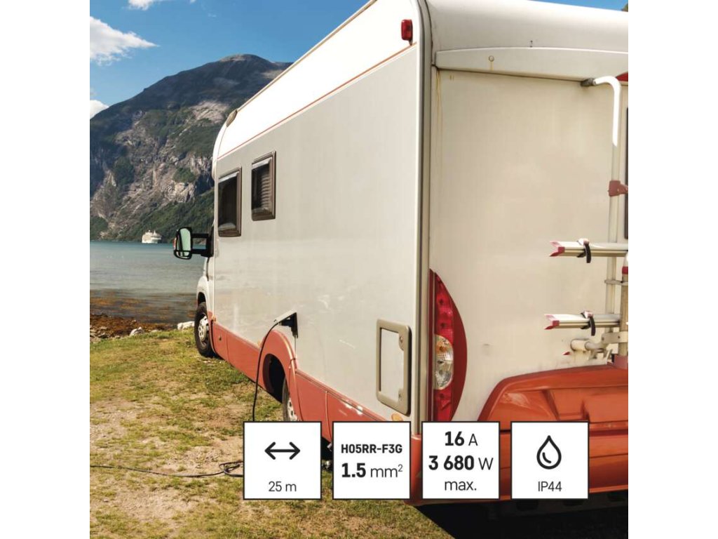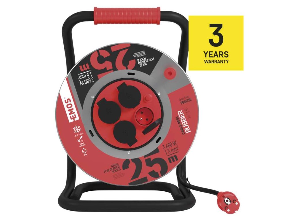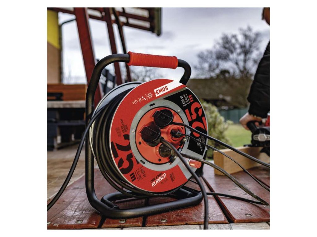 Prodlužovací kabel v domácnostech, dílnách, lehkých provozech umožňuje zapojení až čtyř elektrických zařízení současně. Snadné navíjení kabelu zajišťuje vodící oko a robustní kovové tělo navijáku. Pryžové kabely H05RR-F jsou určeny pro střední mechanická namáhání v prostředí obyčejném, studeném i horkém, vlhkém i mokrém. Kabel s průřezem vodiče 1,5 mm2 odolá vodě, vlhku, studeným i horkým teplotám od -25 °C do +60 °C a nabízí tak mnohostranné využití. Pokud hledáte spolehlivého parťáka, který vám vydrží mnoho let, vsaďte na kvalitní navíjecí buben EMOS nabízený s prodlouženou tříletou zárukou.