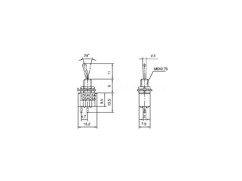 Vypínač páčkový MTS-101 ON-OFF 1pol.250V/3A otvor 6mm L348