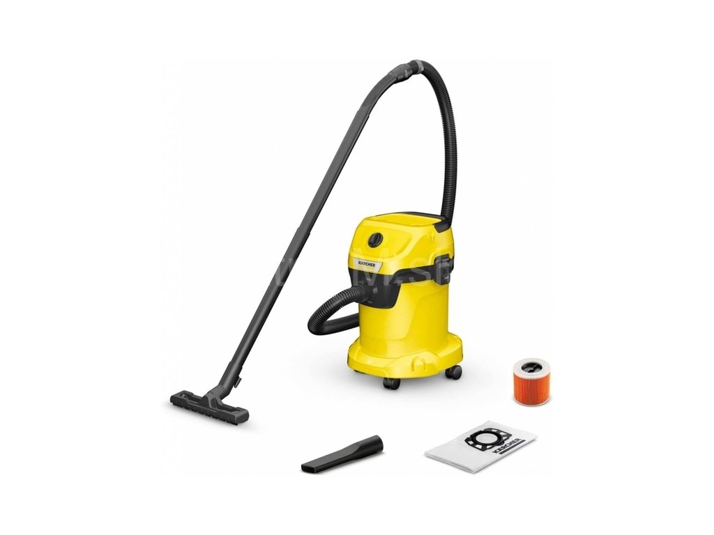Kompaktní vysavač KÄRCHER WD 3 na mokré a suché vysávání je univerzálně použitelný stroj, který spolehlivě odstraňuje nečistoty.