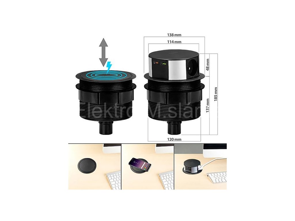 - výsuvný blok zásuvek pro pracovní desky nebo kuchyňské linky