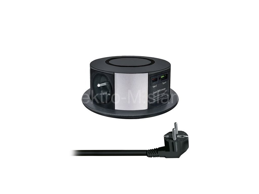 Výsuvný blok 3x zásuvka+USB A+C PP120CW-PD20-B černá